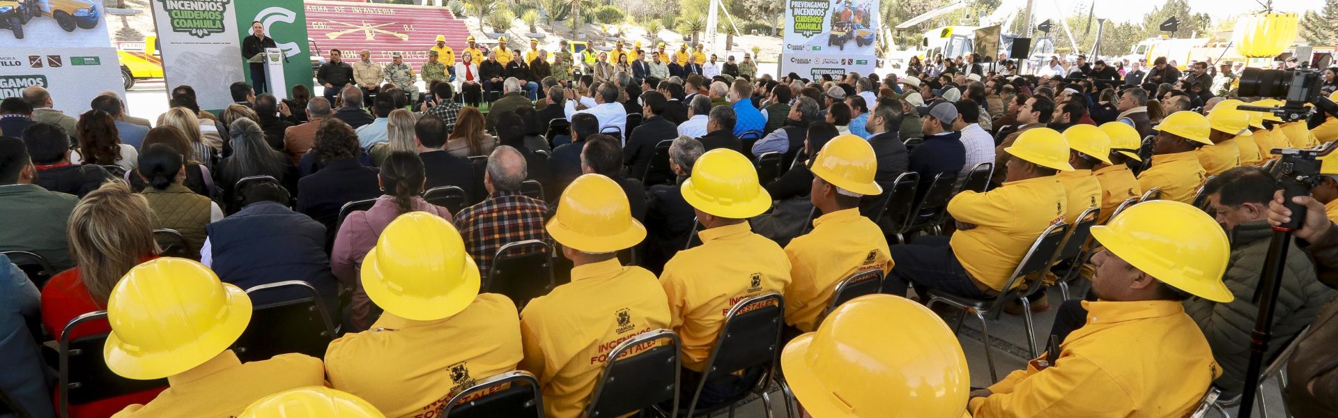 Además, el coordinador estatal de la Guardia Nacional en Coahuila, Gral. de Brigada DEM, José Luis Sedano Ramírez, y el comandante de la Sexta Zona Militar, Gral. De Brigada del Estado Mayor, Jesús Alejandro Adame Cabrera, así como brigadistas, bomberos, miembros de la sociedad civil, de instituciones educativas y del sector empresarial.