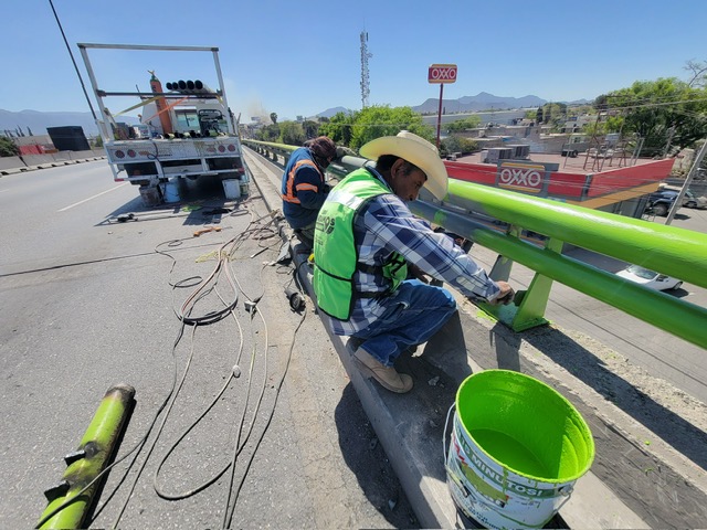 Para mejorar la seguridad vial, el Gobierno de Saltillo continúa con los trabajos de rehabilitación de parapetos en las principales vialidades de la ciudad, prueba de ello los trabajos realizados en el puente vehicular del bulevar Venustiano Carranza y su entronque con el bulevar Pedro Figueroa.