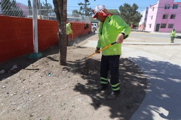 Además, se trabaja en la limpieza y deshierbe de las calles de la unidad habitacional, como en las calles 20 y 23.