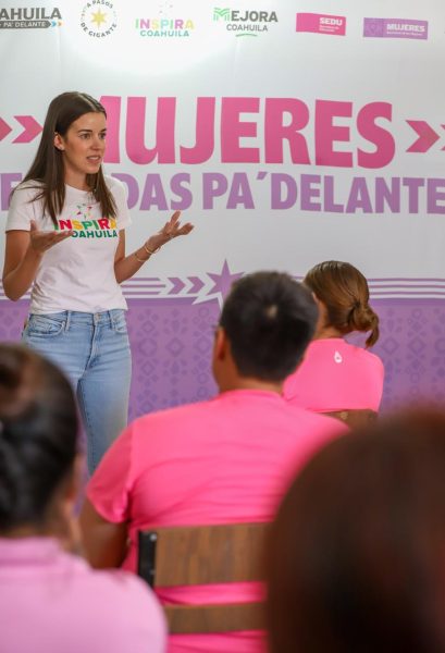 Paola Rodríguez López, presidenta honoraria de Inspira Coahuila, recordó que siguiendo las instrucciones del gobernador Manolo Jiménez Salinas y como parte de los objetivos principales del programa «Mujeres echadas pa’delante», se lleva hasta los Centros penitenciarios estos beneficios.