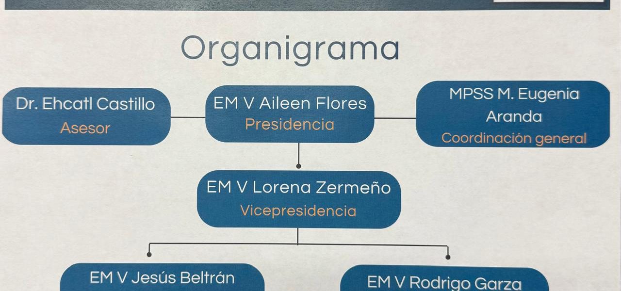 El director de la Facultad de Medicina, Dr. Jesús Ángel Padilla Gámez, compartió que la mesa directiva de esta comisión está conformada de la siguiente manera: como asesor, el docente, Dr. Ehcatl Castill; presidente, estudiante de medicina de quinto semestre, Aileen Flores; vicepresidenta, estudiante de medicina de quinto semestre, Lorena Zermeño; secretario general, estudiante de medicina de quinto semestre, Jesús Beltrán; tesorero, estudiante de medicina de quinto semestre, Rodrigo Garza y como coordinadora general, la médico pasante, Eugenia Aranda.