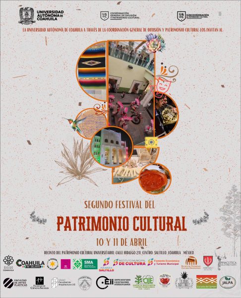 26 Marzo 2025; Saltillo, Coahuila.- La Universidad Autónoma de Coahuila a través de la Coordinación General de Difusión y Patrimonio Cultural, invita al Festival del Patrimonio Cultural 2025 durante los días 10 y 11 de abril, esto con el objetivo de lograr una participación amplia de diversos sectores como el universitario, gubernamental, educativo y de la sociedad en general.
