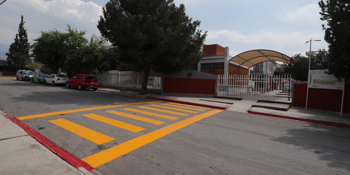 Para brindar cruces más seguros a las y los estudiantes de la Escuela Primaria “Félix U. Gómez” que se encuentra en este sector, brigadas de “Aquí Andamos” pintaron de amarillo los pasos peatonales frente a la puerta principal, así como en las esquinas de las calles Veinte y Azteca, y en calle Veintidós y Azteca.