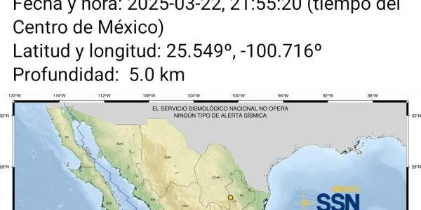 Secretaría de Gobierno Informa 22 Marzo 2025; Saltillo, Coahuila.- La Secretaría de Gobierno, a través de la Subsecretaría de Protección Civil de Coahuila, informa: Alrededor de las 21:55 horas, el Servicio Sismológico Nacional registró un sismo de magnitud 3.8 grados,…