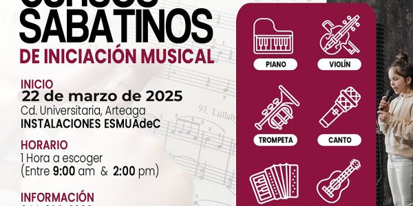 Inscríbete al Curso Sabatino de Iniciación Musical que Ofrece la Escuela Superior de Música de la UAdeC Por Jorge Moreno 20 Marzo 2025; Arteaga, Coahuila.- A partir del 22 de marzo inician los cursos sabatinos de iniciación musical que ofrece…