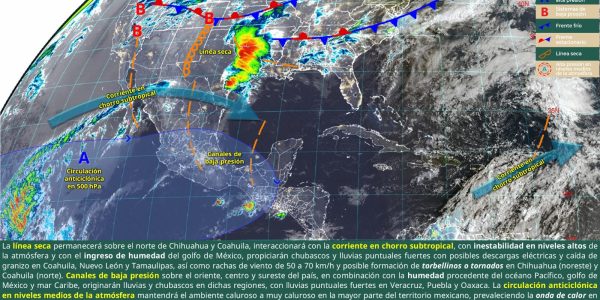 SE ESPERAN LLUVIAS FUERTES Y POSIBLE FORMACIÓN DE TORBELLINOS O TORNADOS EN COAHUILA Por Jorge Moreno 23 Abril 2025; Saltillo, Coahuila.- La Secretaría de Gobierno, a través de la Subsecretaría de Protección Civil del Estado, informa que este miércoles…