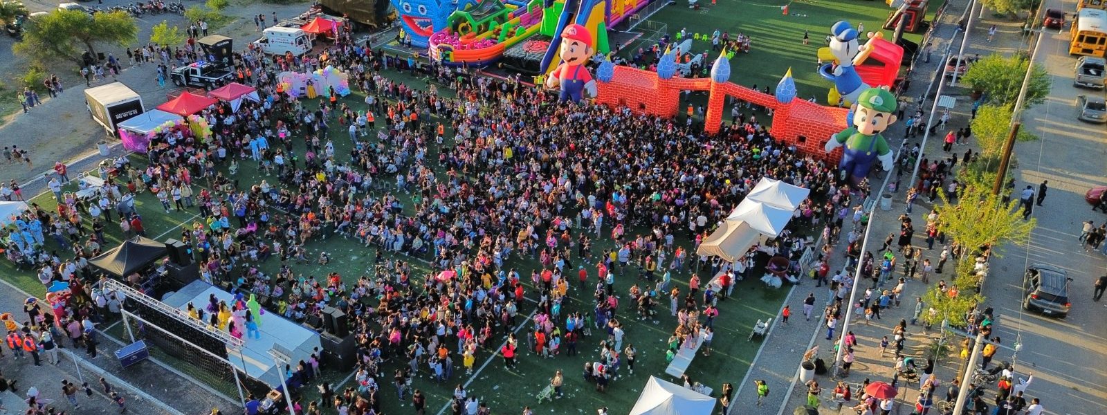 1 Mayo 2025; Parras, Coahuila de Zaragoza.- Parras fue escenario de un evento sin precedente, donde más de 5 mil personas se reunieron para celebrar el Día de las y los Niños con el inflable más grande de México que fue instalado en las canchas del Santo Madero.