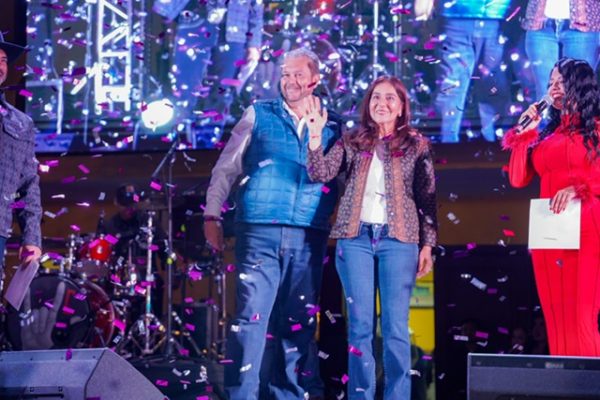 10 Mayo 2025; Ramos Arizpe, Coahuila. – La Plaza de Armas de Ramos Arizpe se convirtió en el corazón del inicio de la celebración del 45 aniversario de la ciudad y ocasión también propicia para festejar a las Madres de familia, con una noche inolvidable llena de música, sabores tradicionales y emociones compartidas donde más de 15 mil personas se dieron cita para disfrutar del concierto gratuito de Grupo Costumbre y Míster Chivo, así como de la Feria del Tamal y del Pan de Pulque.