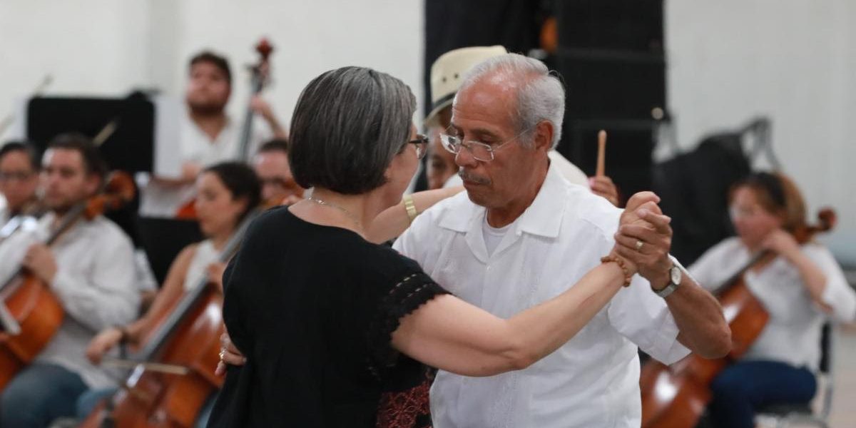 Durante el concierto las y los presentes disfrutaron de diferentes piezas de boleros y danzones que hicieron a muchos sacar a relucir sus mejores pasos de baile en pareja.