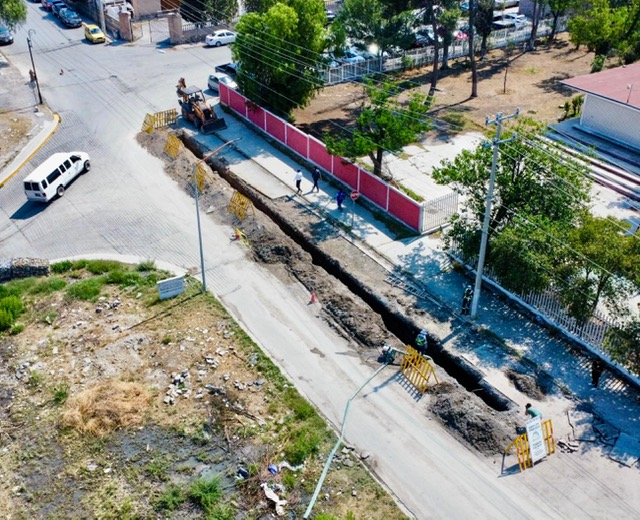 La primera de ellas se encuentra en la calle Zaragoza, a espaldas del DIF Municipal y junto a la Secundaria Técnica del Estado, donde se lleva a cabo la sustitución de 45 metros de tubería de drenaje sanitario que colapsó recientemente.
