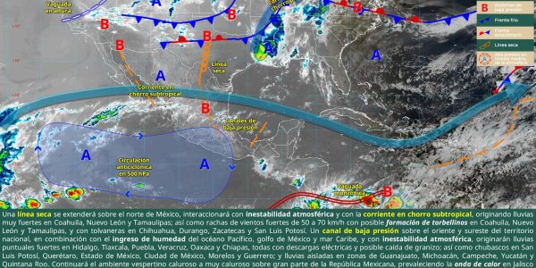 SE PRONOSTICAN LLUVIAS Y VIENTOS FUERTES CON POSIBLE FORMACIÓN DE TORBELLINOS EN COAHUILA Por Jorge Moreno 1 Mayo 2025; Saltillo, Coahuila.- La Secretaría de Gobierno, a través de la Subsecretaría de Protección Civil del Estado, informa que una línea…