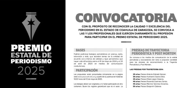 CONVOCA GOBIERNO DE COAHUILA AL PREMIO ESTATAL DE PERIODISMO 2025