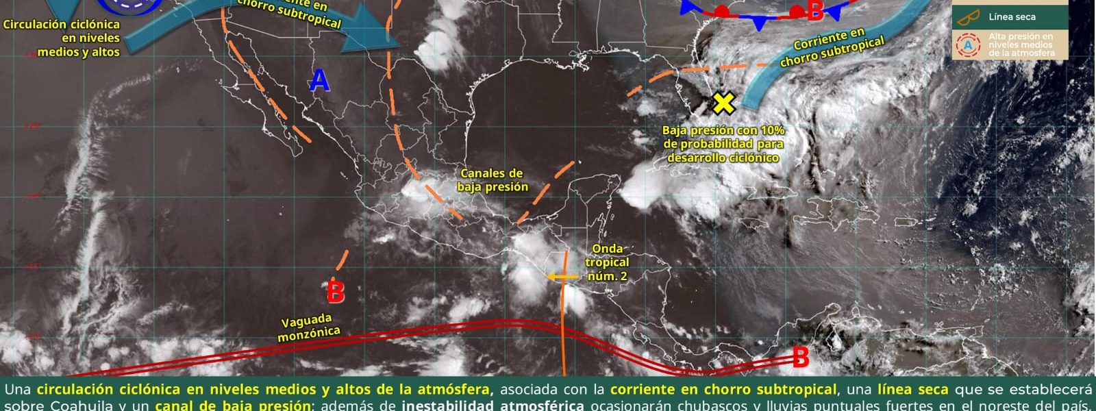 Además, continuará la onda de calor, con temperaturas muy altas en gran parte del estado. El calor extremo puede afectar la salud, sobre todo en niñas y niños, personas adultas mayores y quienes padecen enfermedades crónicas.