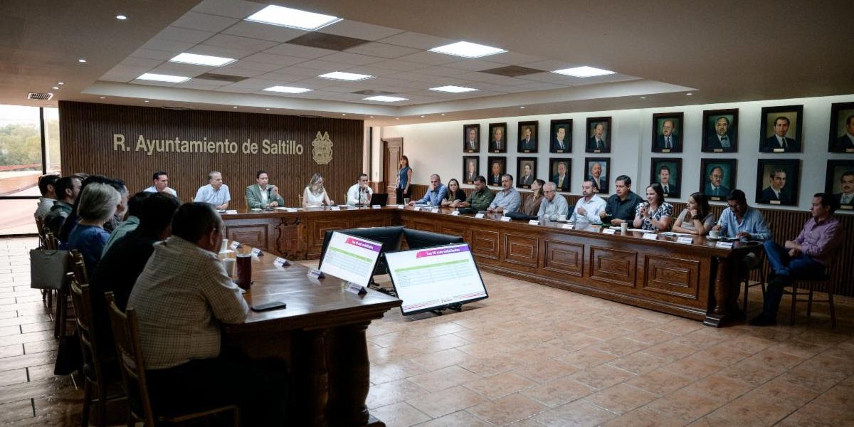 18 Junio 2025; Saltillo, Coahuila.- El alcalde Javier Díaz González, encabezó la reunión de Gabinete en la que se hizo un balance de los primeros seis meses de la administración municipal por parte de cada una de las áreas, además se establecieron acuerdos para seguir trabajando por Amor a Saltillo en beneficio de la población.