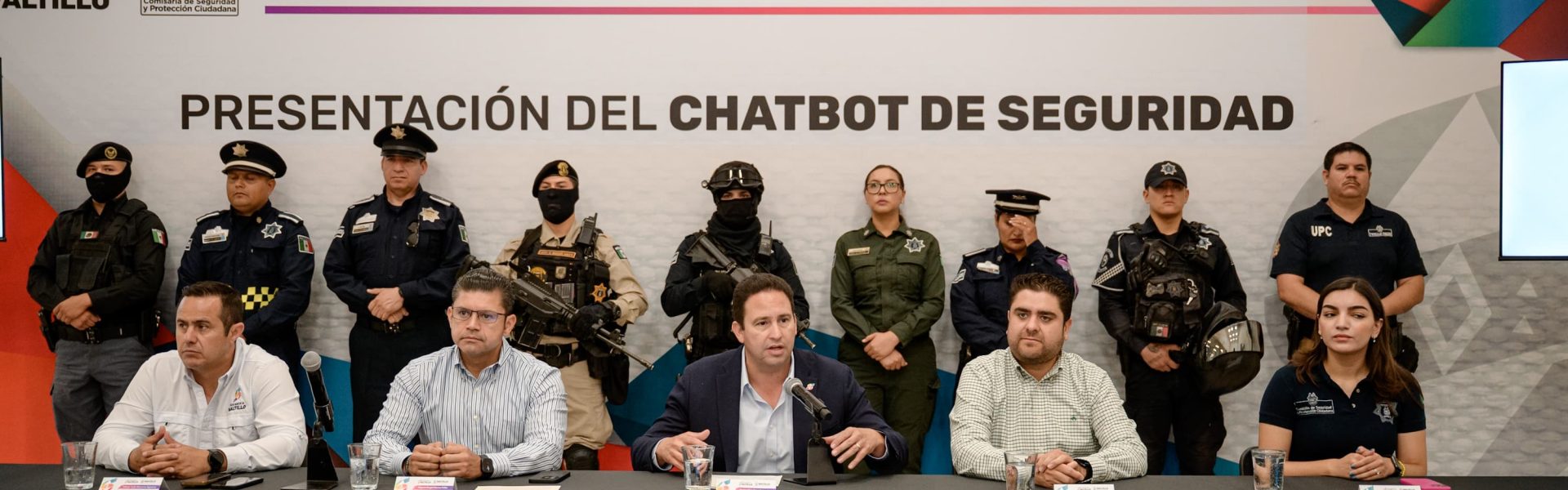 Durante la presentación estuvieron Eduardo Medrano Aguirre, regidor presidente de la Comisión de Seguridad Pública y Tránsito; César Iván Moreno Aguirre, jefe de Gabinete y Proyectos Estratégicos; y Erika Fernanda Cavazos Aguilar, coordinadora del Centro de Monitoreo de los Comités Ciudadanos de Seguridad.