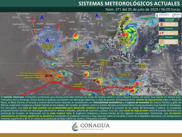 5 Julio 2025; Saltillo, Coahuila. – La Secretaría de Gobierno, a través de la Subsecretaría de Protección Civil del Estado, informa que canales de baja presión sobre la Mesa del Norte, la Mesa Central, el noreste y oriente del territorio nacional, en combinación con inestabilidad atmosférica y el ingreso de humedad proveniente del océano Pacífico y el golfo de México, originarán chubascos y lluvias fuertes acompañadas de descargas eléctricas y posible caída de granizo en Coahuila.