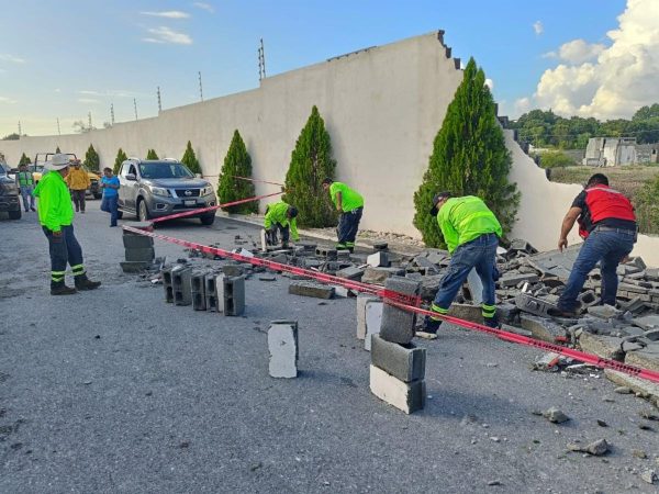 Asimismo, tras las lluvias de la tarde de este miércoles, se atendió a familias y automovilistas, tras la caída de la barda perimetral de casi 100 metros de longitud en este sector habitacional, así como el derribo de un árbol y la afectación directa a varios domicilios.