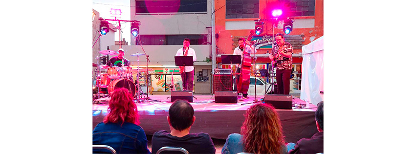 En el Distrito Centro, en la plaza Nueva Tlaxcala, se presentó Héctor Zárate Trío, con composición e improvisación libre en el jazz, sin límites ni prejuicios estilísticos.