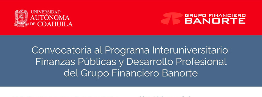 17 Julio 2025; Saltillo, Coahuila.- La Universidad Autónoma de Coahuila invita a sus estudiantes a potencializar su talento y participar en la Convocatoria Programa Interuniversitario: Finanzas Públicas y Desarrollo Profesional del Grupo Financiero Banorte.