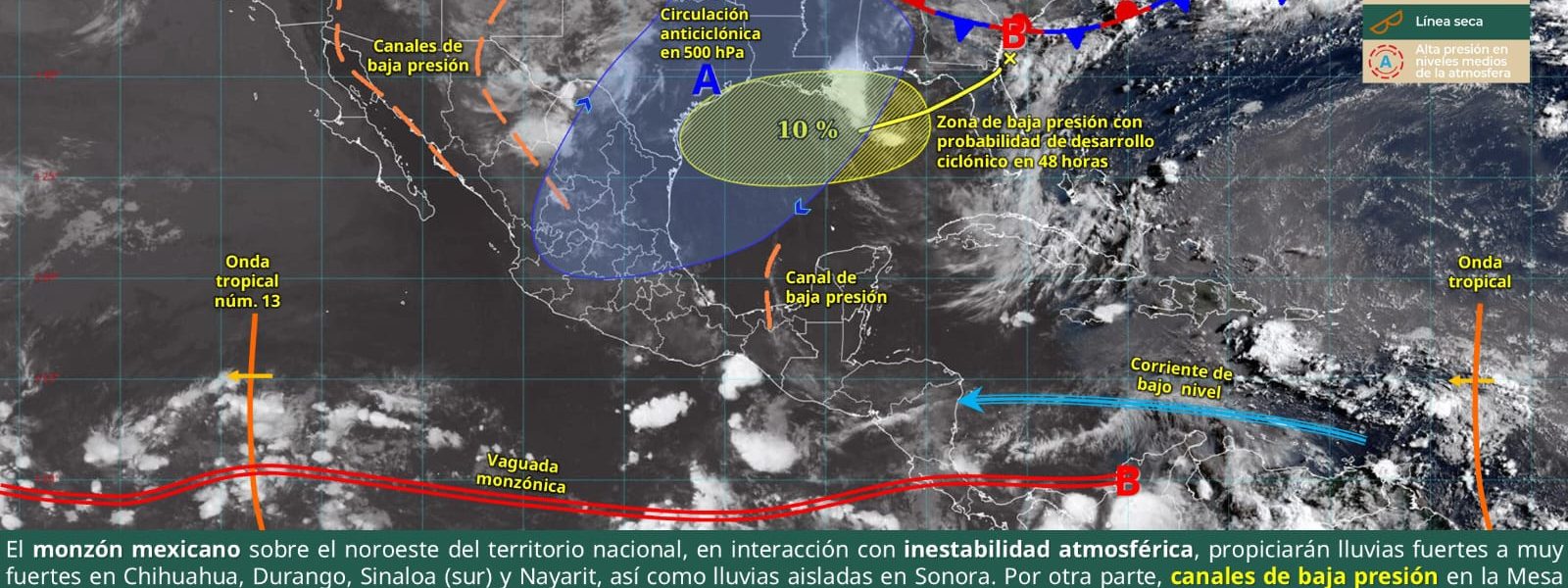 23 Julio 2025; Saltillo, Coahuila.– La Secretaría de Gobierno, a través de la Subsecretaría de Protección Civil del Estado, informa que para este día, la presencia de canales de baja presión en el norte, oriente y occidente del país, junto con inestabilidad en la atmósfera y el ingreso de humedad del océano Pacífico y el golfo de México, provocarán lluvias fuertes en Coahuila, acompañadas de descargas eléctricas y posible caída de granizo.