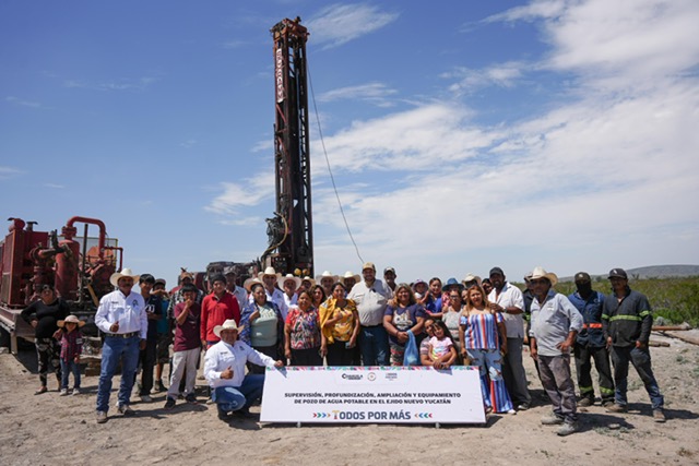23 Julio 2025; Ejido Nuevo Yucatán, municipio de Ramos Arizpe, Coahuila.- El alcalde Tomás Gutiérrez Merino visitó el ejido de Nuevo Yucatán, uno de los más alejados de la zona urbana de Ramos Arizpe, para supervisar los trabajos de ampliación y equipamiento del pozo de agua que muy pronto abastecerá a esta comunidad.