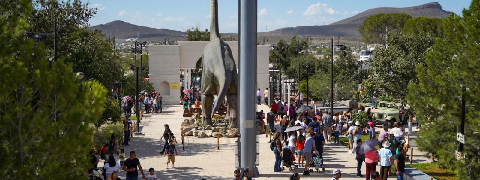Una aventura jurásica con más de 13 dinosaurios animatrónicos, zona de excavación de fósiles, puente colgante, y un avión estrellado que encantará a los más pequeños. La estrella del parque: un impresionante dinosaurio de cuello largo de 15 metros de altura. Visítalo en la Alameda de Ramos Arizpe.