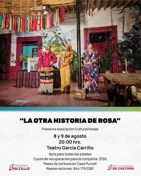 7 Agosto 2025; Saltillo, Coahuila.- El Gobierno Municipal, a través del Instituto Municipal de Cultura y la Asociación Cultural Rodas, invitan a las y los saltillenses de todas las edades a disfrutar de la obra de teatro “La otra historia de Rosa”.