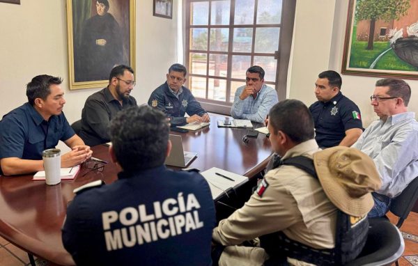 Por instrucciones del alcalde, Tomás Gutiérrez Merino; el secretario del Ayuntamiento, Alejandro González Farías, y el director de Seguridad Pública Municipal, Rolando Álvarez Flores, se reunieron con el comisionado de Seguridad y Protección Ciudadana de Saltillo, Miguel Ángel Garza Félix y su equipo de trabajo, con el objetivo de afianzar estrategias conjuntas que favorezcan el resguardo de la población y la protección de las inversiones.