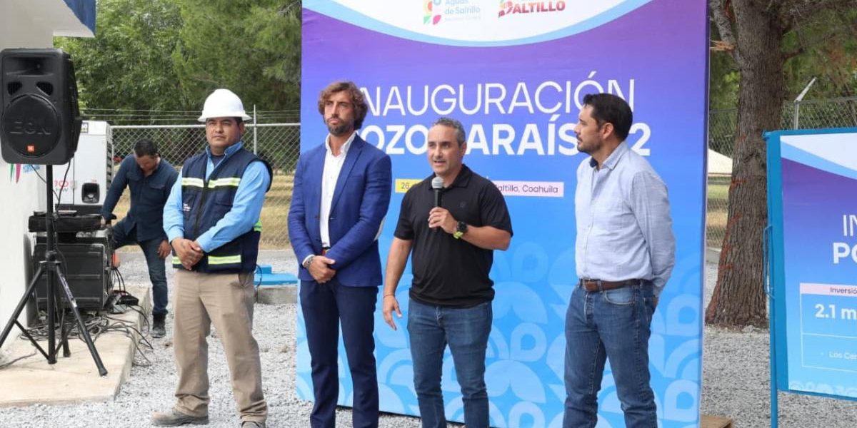 27 Agosto 2025; Saltillo, Coahuila.- Como parte del proyecto para fortalecer el abasto de agua potable a la población, impulsado por el alcalde Javier Díaz González, autoridades municipales y directivos de Aguas de Saltillo (Agsal) pusieron en operación el pozo «El Paraíso Dos», que se ubica al interior del parque del mismo nombre, en La Aurora.