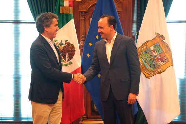 «Recibimos en Palacio de Gobierno al Embajador de la Unión Europea en México, Francisco André, con quien dialogamos sobre proyectos y acciones conjuntas. Seguiremos sumando esfuerzos en materia de economía, derechos humanos y turismo. En Coahuila hay equipo, visión y voluntad para seguir llevando a nuestro estado pa’ delante y siempre a pasos de gigante», destacó el gobernador.