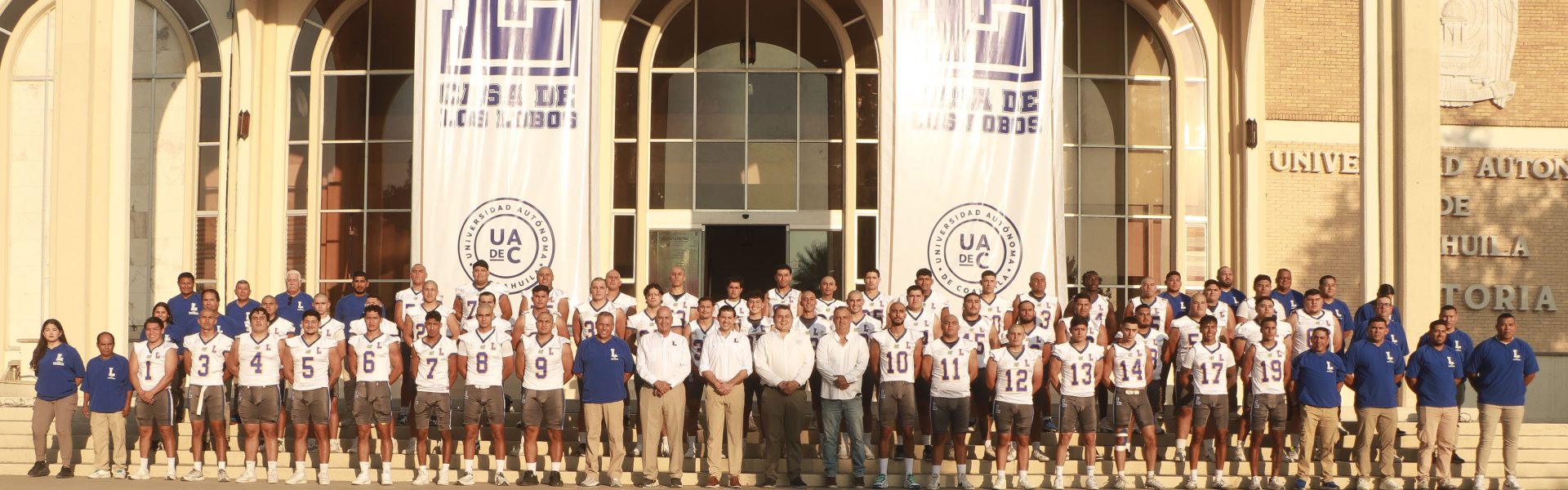 5 Septiembre 2025; Saltillo, Coahuila.- El equipo de Lobos de Futbol Americano de la Universidad Autónoma de Coahuila, se tomó la fotografía oficial ante el inicio de la temporada de la Conferencia Nacional de la Liga Mayor de la Organización Nacional Estudiantil de Futbol Americano (ONEFA) 2025.