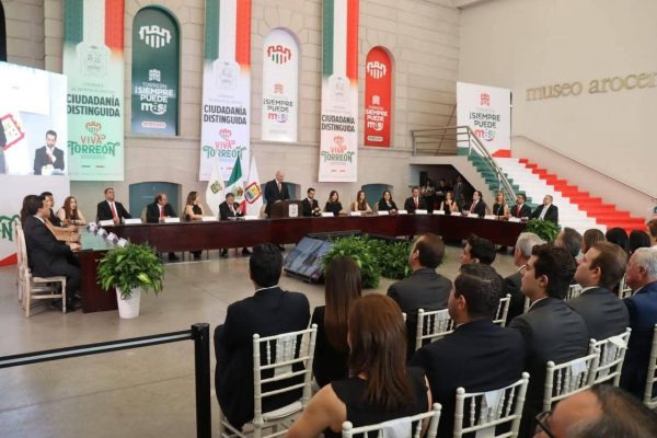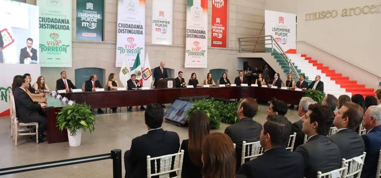 En la Plaza Peñoles del Museo Arocena, con motivo de la celebración del aniversario número 118 del decreto que elevó a la antigua villa de Torreón al rango de ciudad, el 15 de septiembre en sesión solemne de cabildo presidida por el alcalde Román Alberto Cepeda González, se realizó la entrega de preseas a ciudadanos distinguidos por sus altos méritos, trayectoria y aportaciones en beneficio de la sociedad, las ciencias, la literatura y el deporte.