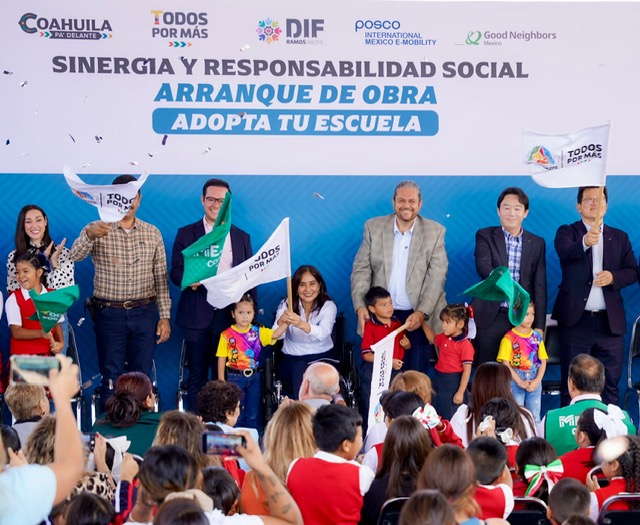 30 Septiembre 2025; Ramos Arizpe, Coahuila.- Gracias a la articulación de esfuerzos entre el Gobierno Municipal, a través del DIF Ramos Arizpe, la empresa surcoreana Posco International E-Mobility y la organización humanitaria internacional Good Neighbors, se puso en marcha un importante proyecto de infraestructura y equipamiento educativo en beneficio de niñas, niños y jóvenes de Ramos Arizpe.