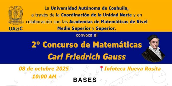 Invita UAdeC Unidad Norte a sus Alumnos de Bachillerato al 2° Concurso de Matemáticas “Carl Friedrich Gauss”