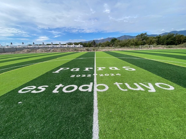 Fue en mayo de 2024 cuando el alcalde Fernando Orozco Lara entregó esta cancha ubicada en la colonia Emiliano Zapata, única en su tipo con medidas profesionales y reglamentarias de 100 metros de largo por 70 metros de ancho, con un sobre ancho de 2.5 metros perimetrales.