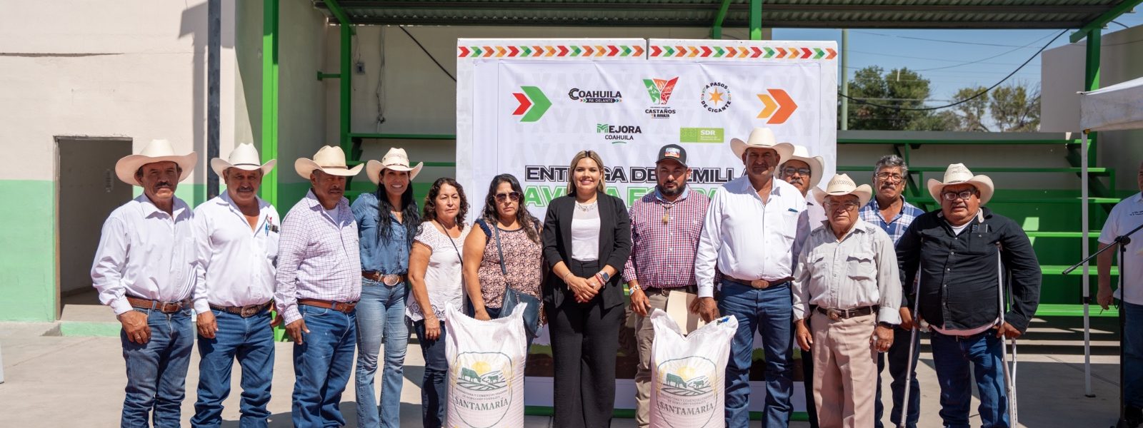 6 Octubre 2025; Castaños, Coahuila.- Como parte del firme compromiso con el sector rural, la Alcaldesa Yesica Sifuentes Zamora encabezó la entrega de cinco toneladas de semilla de avena forrajera subsidiada, acción que busca brindar a las y los productores las herramientas necesarias para fortalecer sus actividades y mejorar su calidad de vida.