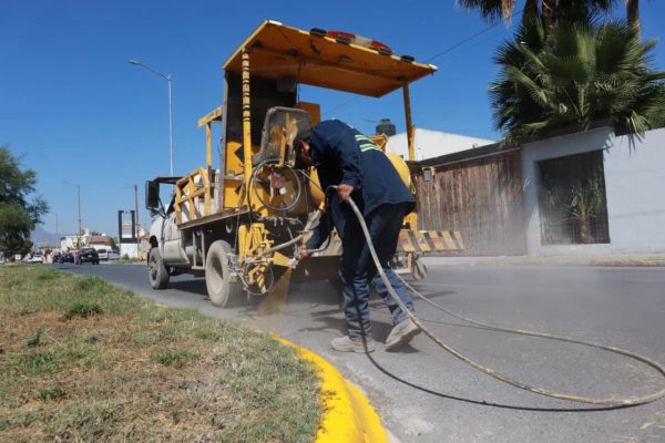 Con el impulso del gobernador Manolo Jiménez Salinas, brigadas del programa “Aquí Andamos” trabajaron en el camellón central del bulevar José María Rodríguez, a fin de delimitar con claridad las zonas de circulación vehicular y los espacios de separación entre sentidos opuestos de circulación.
