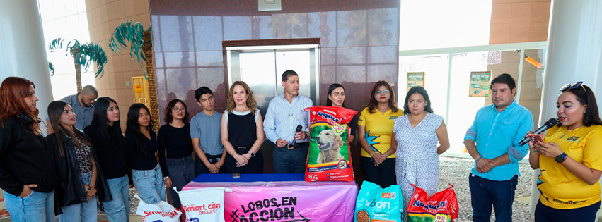 Posteriormente, en el lobby de la Infoteca, se llevó a cabo la entrega de croquetas como parte de las acciones solidarias del programa “Lobos en Acción”, destinadas al apoyo de refugios y animales adoptados dentro de los campus universitarios.