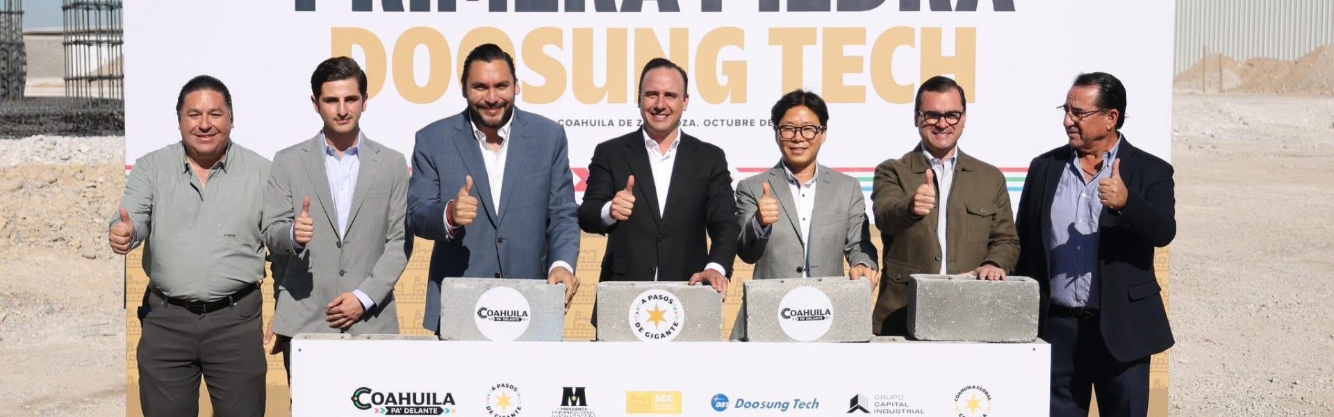 De la misma manera, en la región Centro, en Monclova se colocó la primera piedra de la planta Doosung Tech, y en Frontera se entregó un paso a inferior y par vial, mejorando la movilidad y la competitividad industrial de la región.