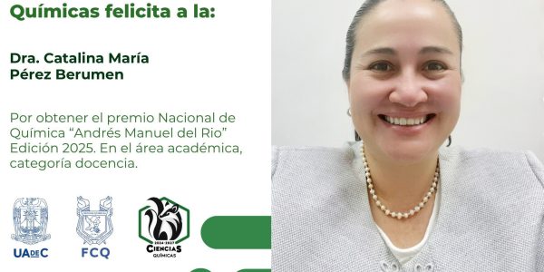 Recibirá la Dra. Catalina María Pérez Berumen el Premio Nacional de Química “Andrés Manuel del Río” 2025 en la categoría Docencia Por Jorge Moreno 3 Octubre 2025; Saltillo, Coahuila.- Catalina María Pérez Berumen, profesora e investigadora de la Facultad…