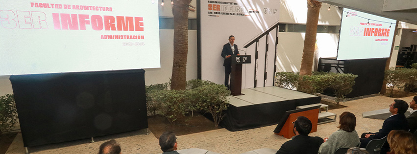 3 Noviembre 2025; Arteaga, Coahuila.- El director de la Facultad de Arquitectura, Unidad Sureste de la Universidad Autónoma de Coahuila, Jesús Alberto Padilla Garza, rindió su tercer informe de actividades correspondiente al periodo 2024-2025.