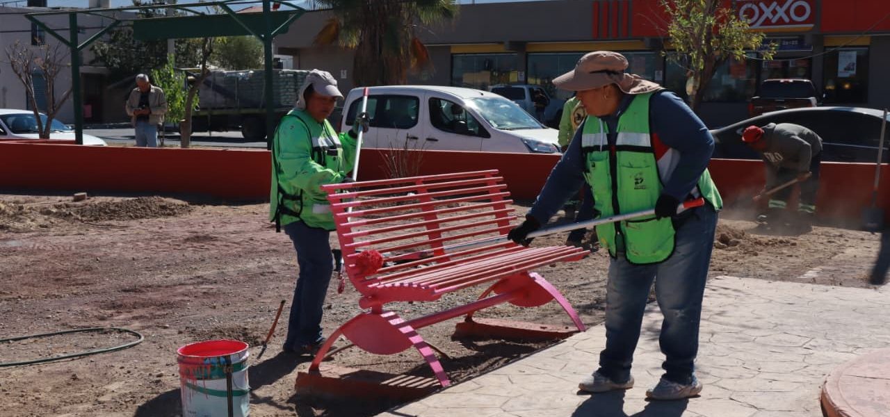 Para impulsar el amor al deporte y las actividades físicas al aire libre, brigadas de “Aquí Andamos” embellecieron y atendieron con aplicación de pintura en bancas y cordón cuneta de esta plaza pública, que es el centro de recreación para las familias de colonias como La Fragua, Gustavo Díaz Ordaz, Los Olivos, Cruz del Aire, Bonanza, entre otras.