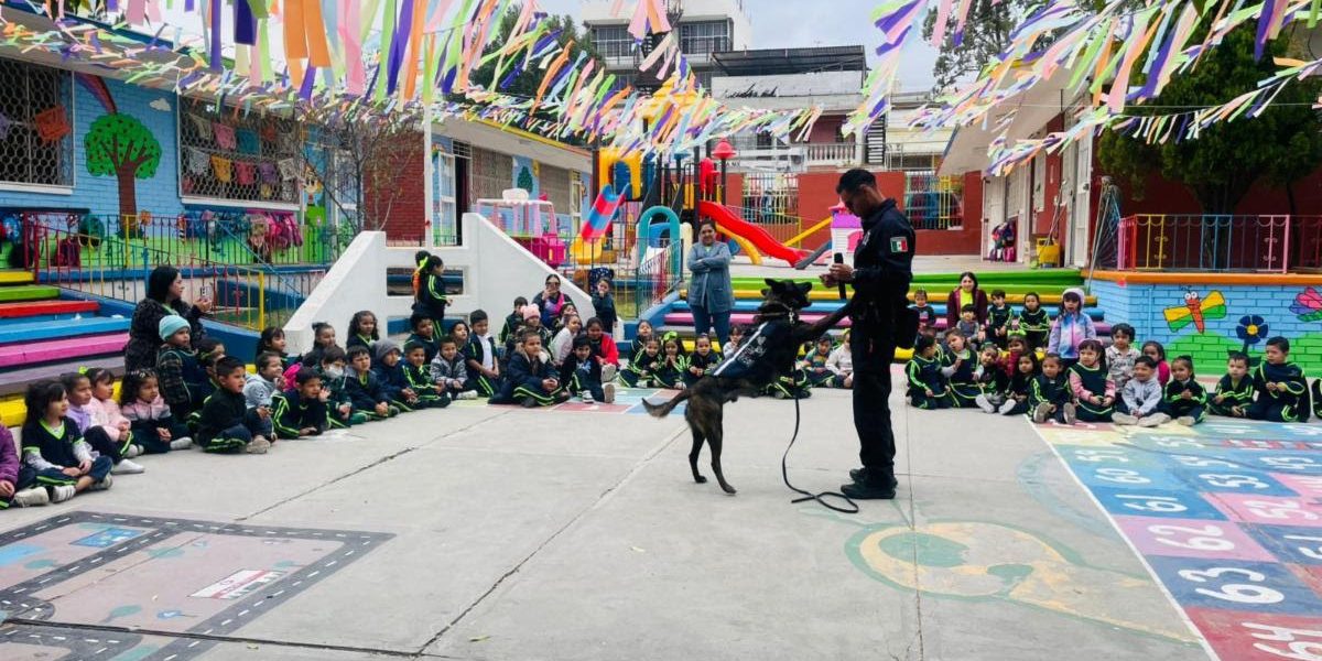 Como ejemplo, en el Instituto Vivir la exhibición la presenciaron cerca de 250 alumnas y alumnos de preescolar, así como de primero, segundo y tercer año de primaria, quienes estuvieron atentos a las exposiciones de los oficiales y se mostraron entusiasmados con la demostración de dron y participación de los elementos caninos.