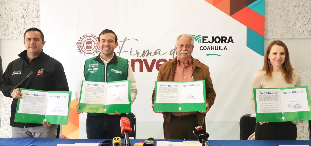 1 Diciembre 2025; Saltillo, Coahuila de Zaragoza.-Con el objetivo de fortalecer al comercio organizado y ampliar los beneficios para las y los trabajadores del sector, la Cámara Nacional de Comercio, Servicios y Turismo Saltillo en conjunto con Mejora Coahuila llevaron a cabo la firmaron un convenio de colaboración, en beneficio de los más de 9 mil agremiados a este organismo.