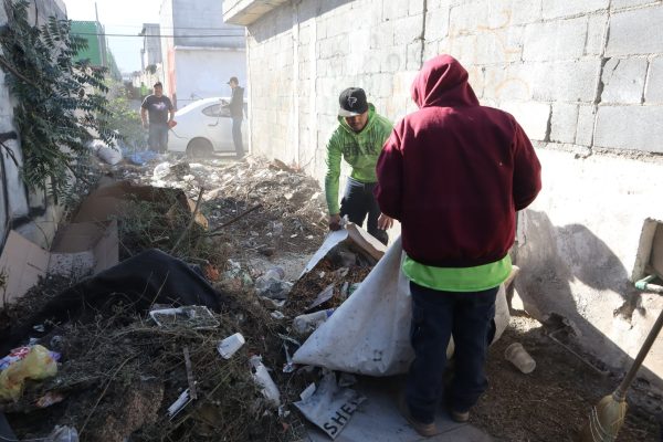 Cuadrillas municipales intervinieron con trabajos de retiro de basura, escombro y desechos inorgánicos en los callejones ubicados entre las calles 2 y 4, así como entre el bulevar Mirasierra y las calles 29 y 27 de esta unidad habitacional al oriente de la ciudad.