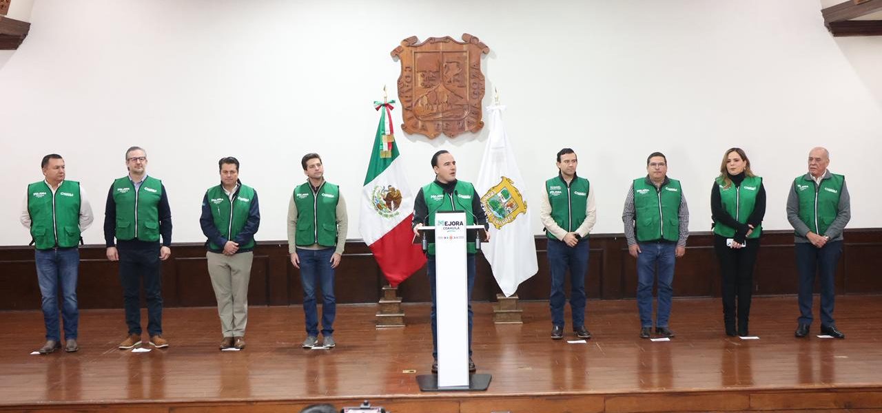 Acompañado por Blas Flores González, jefe de Gabinete y Proyectos Estratégicos; Gabriel Elizondo Pérez, coordinador general de Mejora Coahuila; así como por titulares de diversas dependencias de la administración estatal, Manolo Jiménez.
