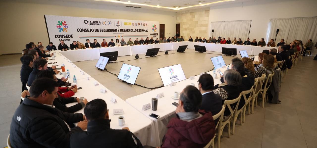 14 Enero 2026; Torreón, Coahuila de Zaragoza.- El gobernador Manolo Jiménez Salinas presidió la primera reunión del año del Consejo de Seguridad y Desarrollo Económico de La Laguna, en la que reiteró su compromiso y el de todas las instituciones, por la seguridad de Torreón, por la seguridad de La Laguna, y por la seguridad de Coahuila.