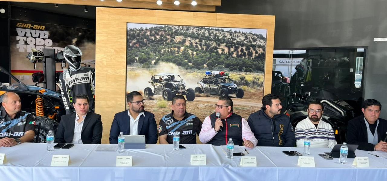 En rueda de prensa, organizadores del evento como Julio Rodríguez, Francisco Aguillón y José Ángel Morales, junto con Miguel López, director de Vinculación en representación de Cristina Amezcua González, titular de SECTUR Coahuila y Gerardo Bernal, de Turismo Municipal, dieron a conocer el evento off road.