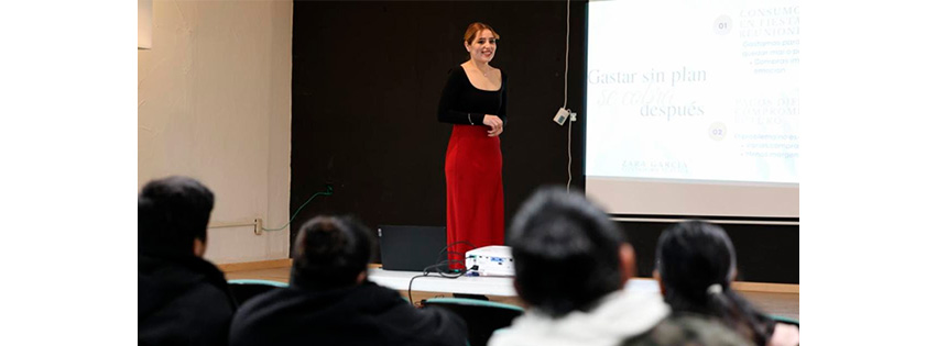 La contadora pública Zara García Álvarez explicó a las y los asistentes puntos clave para detectar los gastos que nadie registra, como el café diario, snacks, antojos, compras rápidas en línea, suscripciones olvidadas o gastos para resolver el día por cansancio o prisa.