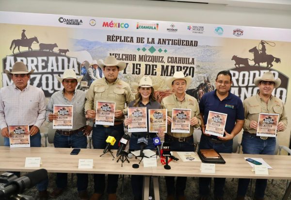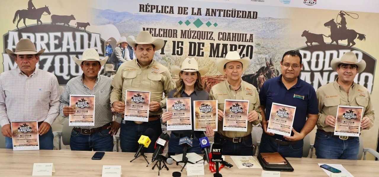 En la capital del estado se anunció la Arreada Múzquiz y el Rodeo Rancho 2026 a realizarse el 14 y 15 de marzo en el Pueblo Mágico. Se moverán 400 cabezas de ganado en la representación de la antigua tradición, esperan entre cinco mil y 10 mil asistentes y una derrama económica superior a los siete millones de pesos.